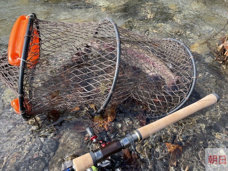 すると、下流で釣っていた人が、網で手伝ってくれ、さらに3分ほど格闘し、救ってくれました。