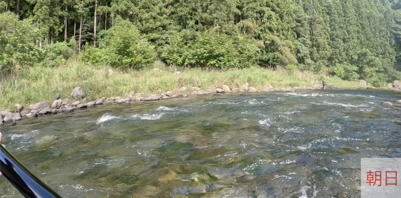 そのため、上流に行くと、なんとなぜか釣り人がすでに、上流の3級瀬のさらに上にいました。
