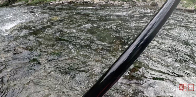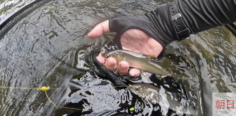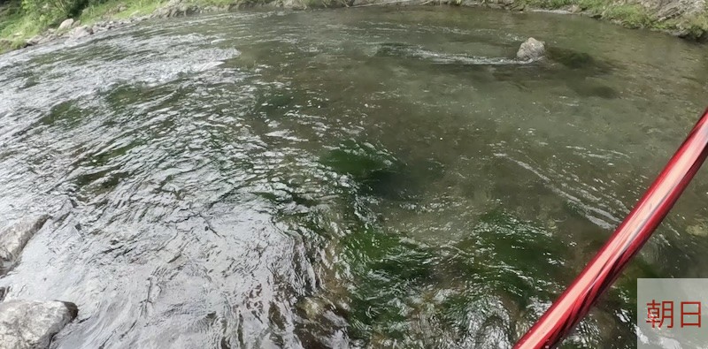 藻だらけの瀬落ちに入れるとなぜか2匹釣れました。