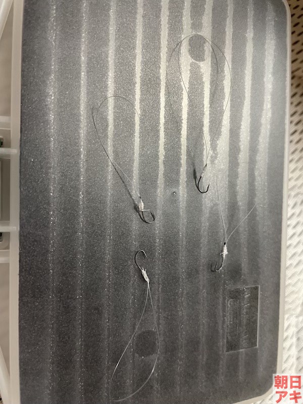 まずワンピースハナカン仕掛けが、今までは1.75号だったのですが、今回から1.2号に細くしました。