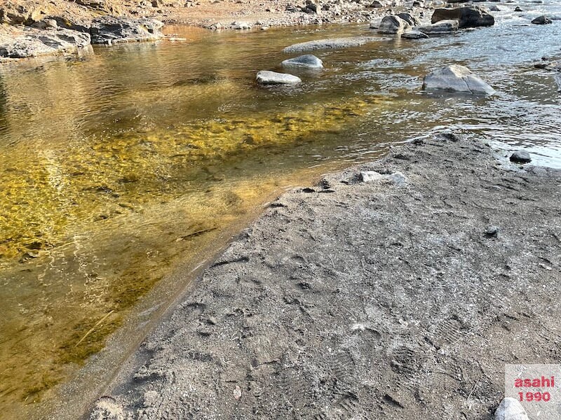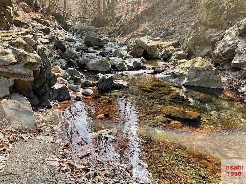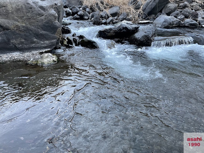 水量はそれほどなさそうです。ちなみにヤマメの稚魚らしき魚影が見えました。魚はいそうです。